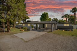 Stylishly, meticulously designed, this 4-bedroom, 3-bathroom horse-friendly ranch sits on just under an acre with irrigation, offering rare privacy and city convenience. The open-concept, split floor plan features floating cabinets, a chef’s kitchen with quartz countertops and stainless steel appliances, recessed modern lighting, two modern fireplaces, and a wine bar with its own separate living space.